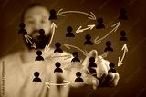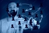 Image depicts a man interacting with a network of people, symbolizing connection, collaboration, and communication in business and so