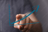 Stock photo of a hand pointing at an upward trending graph, symbolizing growth, success, and progress.