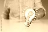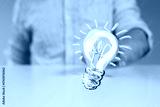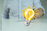 Image of a hand presenting a glowing lightbulb, symbolizing innovation, creativity, and new ideas. Perfect for business and technology con