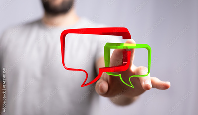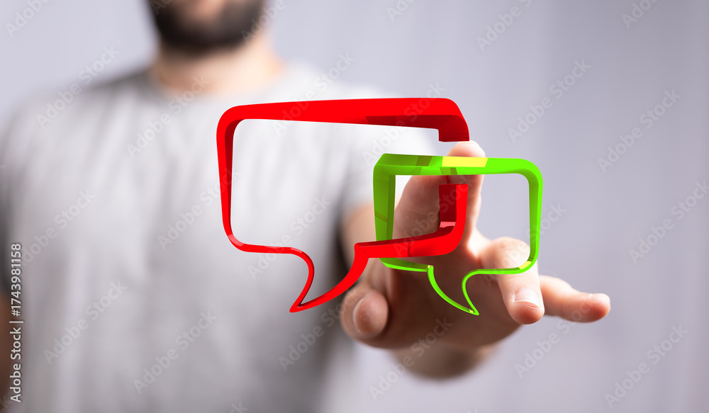 Modern business communication concept with speech bubbles. Focus on interaction and digital connection. Representing feedback, thoughts, and con