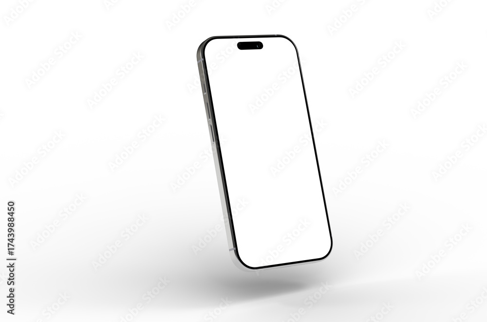 High-quality photo of a modern smartphone with a blank screen, perfect for app presentations or website mockups. Clean, simple design.