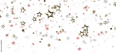 Festive design of gold stars and snowflakes scattering across a white background, perfect for holiday greetings and Christmas themes. Use this i