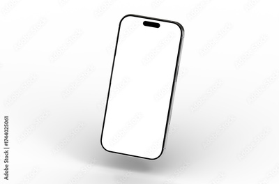 High-quality 3D render of a modern smartphone with a blank screen, ideal for app presentations or website mockups. Clean, minimalist design.