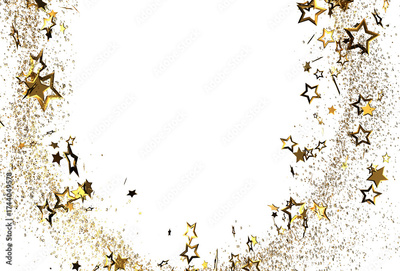 Sparkling gold stars and glitter border on white. Perfect for holiday, celebration, or luxury designs. Download now!