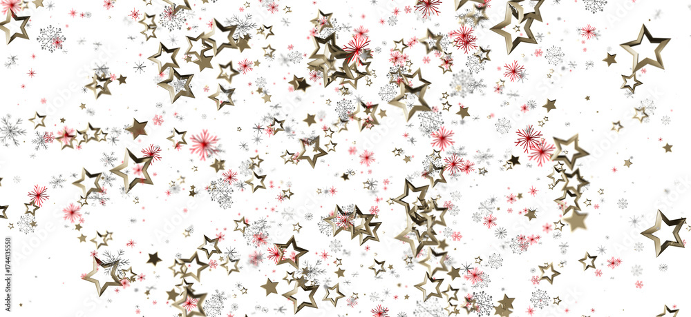Elegant Christmas and New Year background with floating stars and festive decor. Perfect for holiday greetings and seasonal designs.