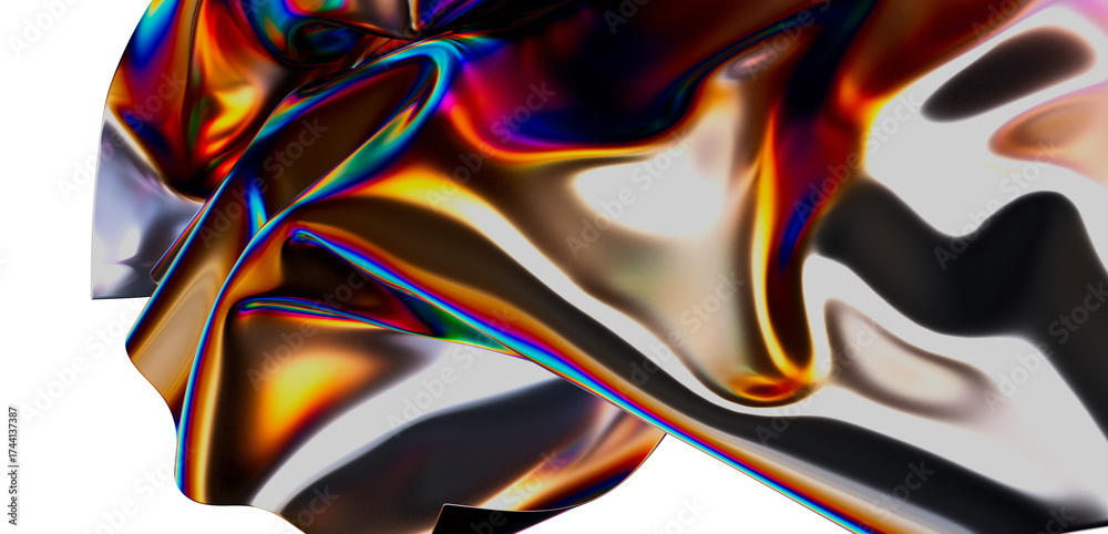 Abstract iridescent fabric, reflecting light in a vibrant spectrum of colors, creating a holographic effect. Perfect for backgrounds and artisti