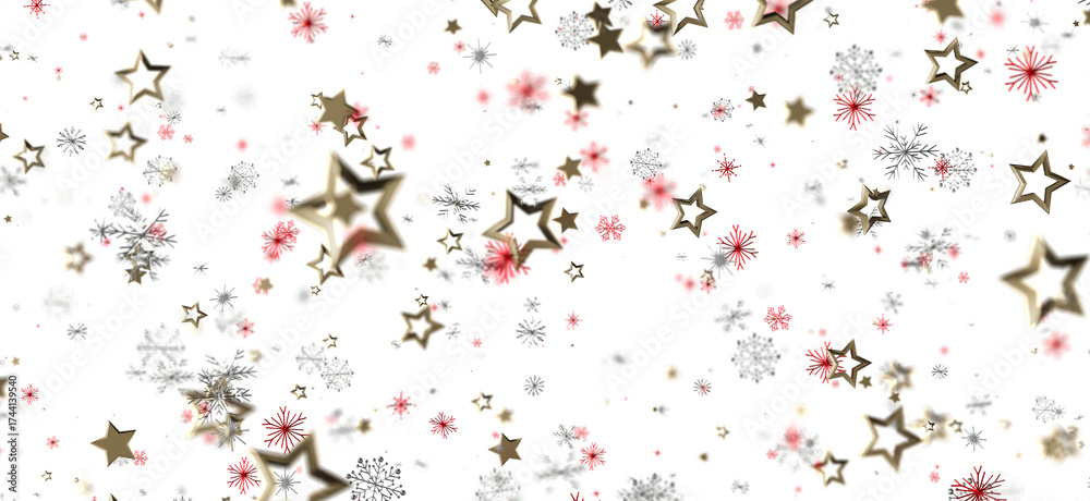 Elegant holiday background with gold stars and snowflakes on white. Perfect for Christmas or winter themes, evoking joy and celebration. Ideal f