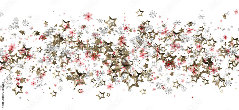 Festive background featuring gold stars, snowflakes and red accents. Perfect for Christmas, New Year or winter-themed projects. Use it for greet