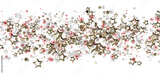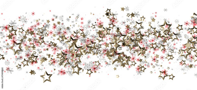 A beautiful abstract background featuring gold stars, red snowflakes, and silver flakes on a white background. Perfect for Christmas, winter, ho