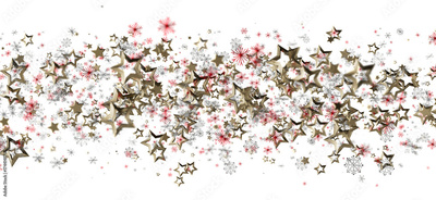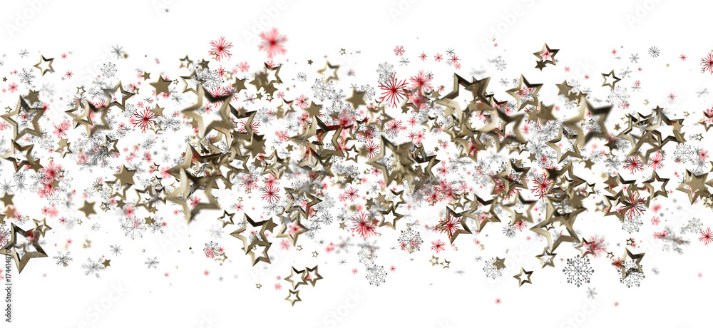 Elegant festive background with gold stars, snowflakes, and red accents on white. Perfect for holiday designs, Christmas greetings, and winter-t