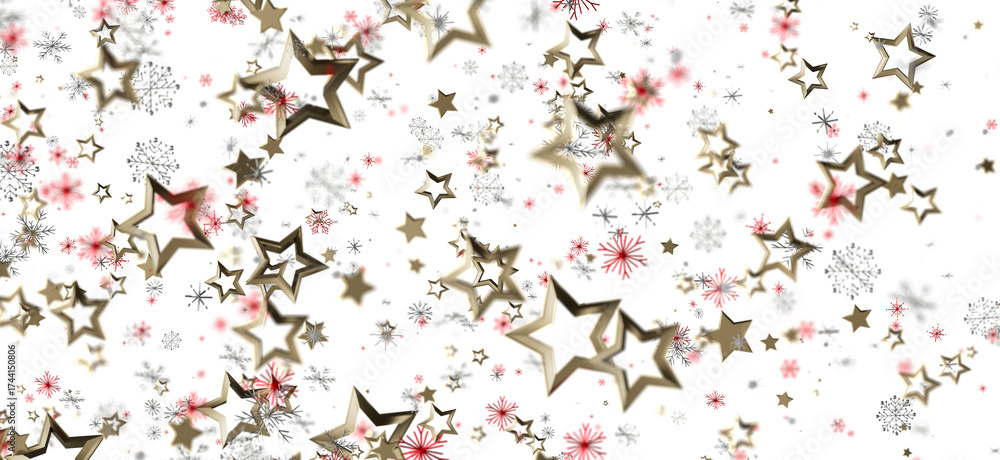 Elegant background featuring golden stars and snowflakes on a white backdrop, perfect for Christmas and winter holiday designs. Ideal for greeti
