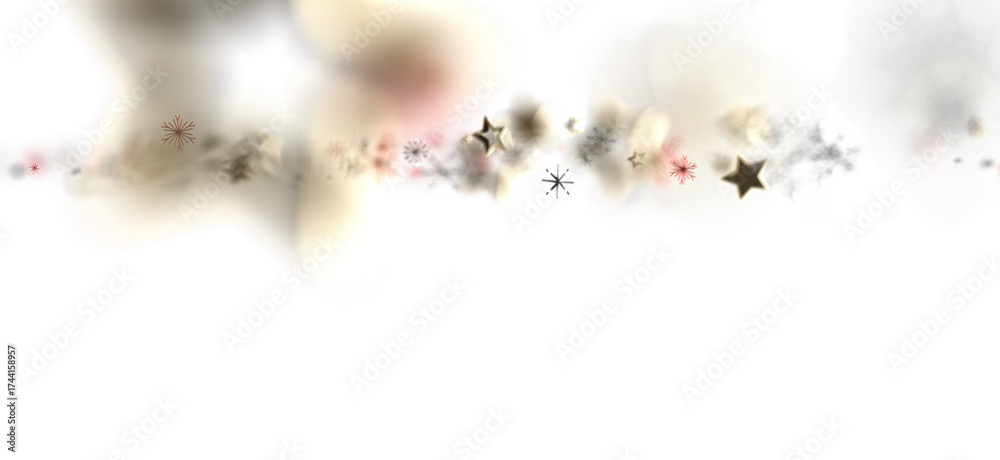 A dreamy, abstract design featuring soft cloud-like textures adorned with stars and festive elements, perfect for backgrounds and decorative pur