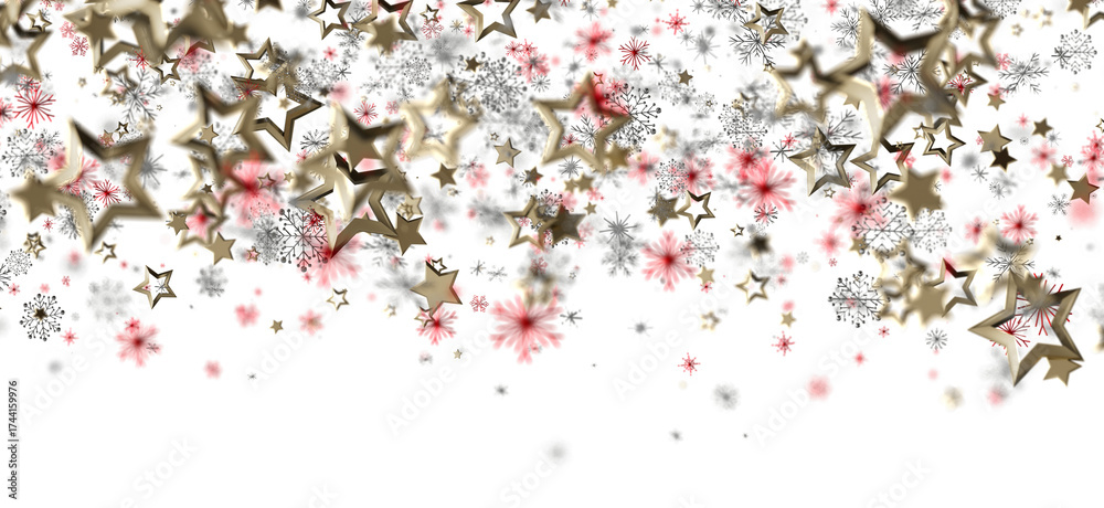 Festive holiday background with floating golden stars, snowflakes, and a soft glow. Perfect for Christmas, winter events, and celebratory design
