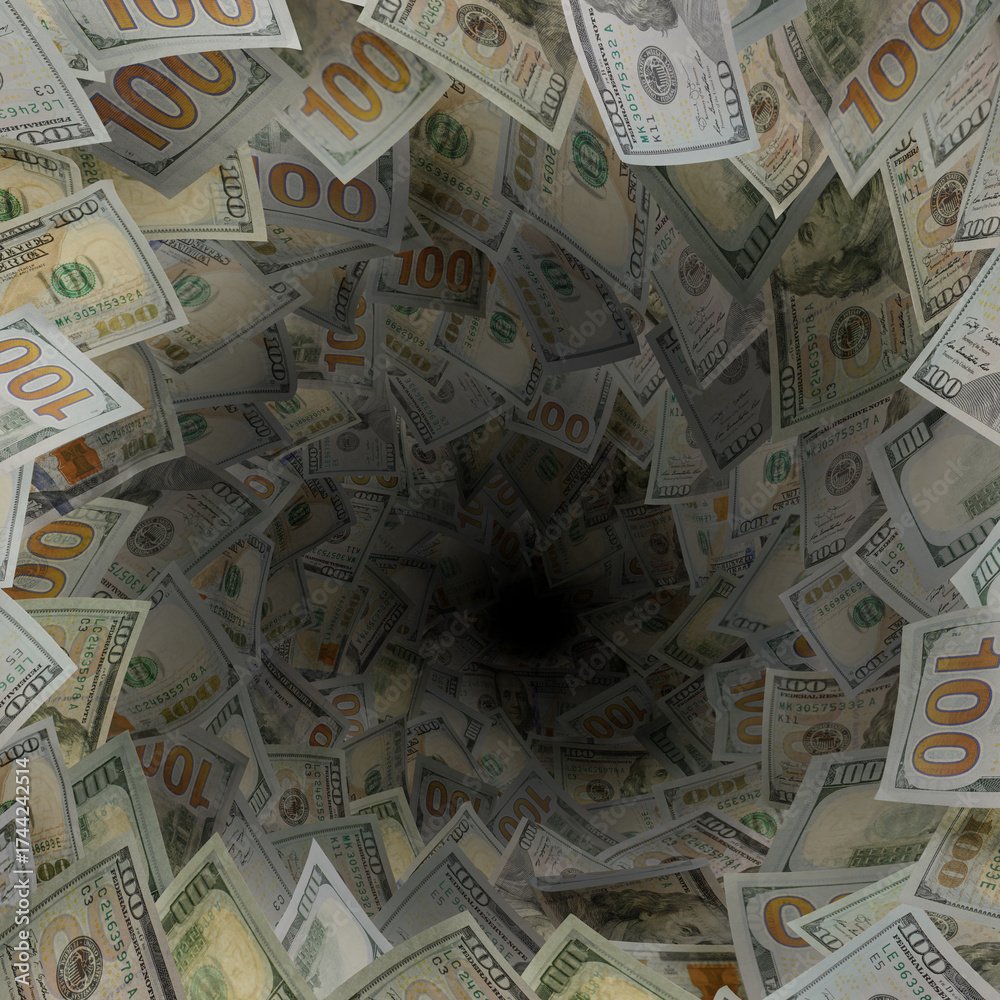 Money vortex. Dollar bills swirling in air