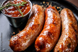 Grilled sausages with spicy ketchup and herbs