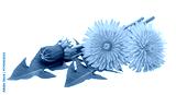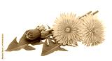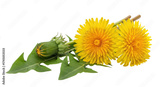 Isolated Vibrant dandelion flower with green leaves and unopened buds on a white surface