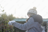 Thoughtful boy holding snow in hand during calm winter outdoor play
