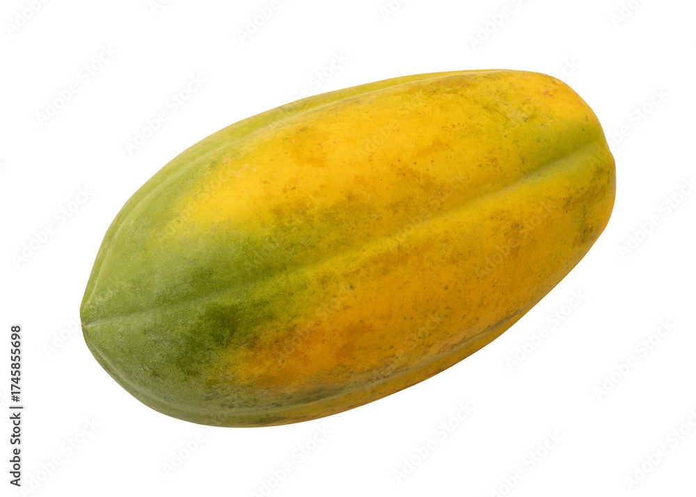 Fresh ripe yellow green papaya fruit Isolated on transparent background