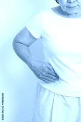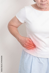 Elderly woman having side and Back Waist pain for Kidney disease, Urinary system and Stones, world Kidney and Cancer day, Chronic kidney, Organ Donor Day and Health care concept
