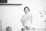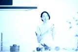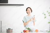キッチンでレシピを探す主婦のイメージ カロリーや健康なレシピを検索する