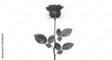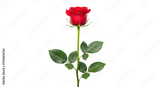 Isolated flower showcasing a single red rose blossom and green leaves, romantic floral element