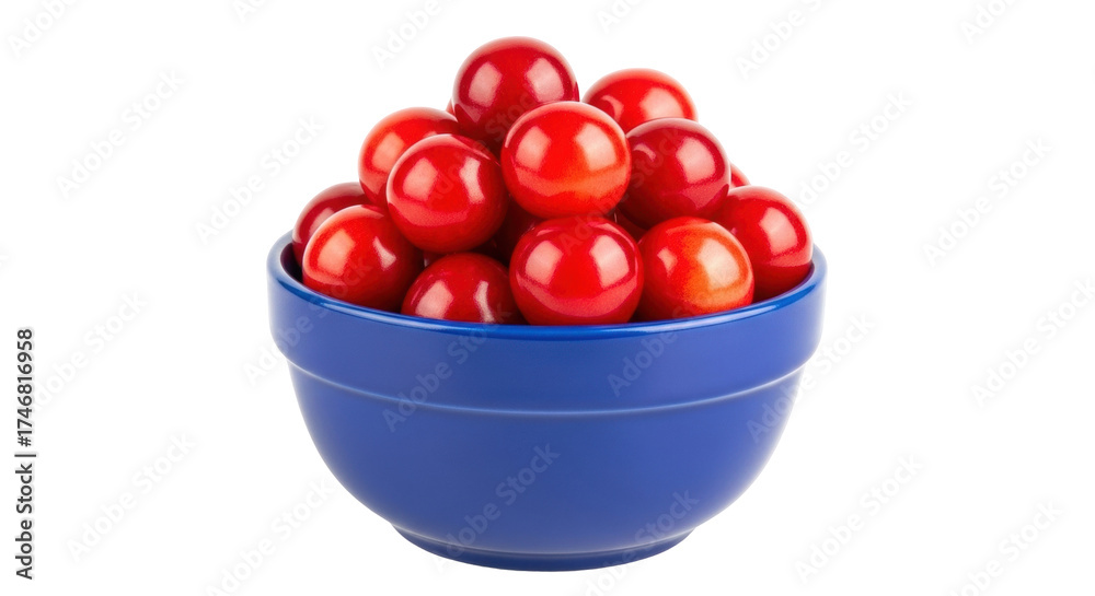 Isolated bowl of red cherries, healthy fresh fruit for snacks and desserts, summer treat
