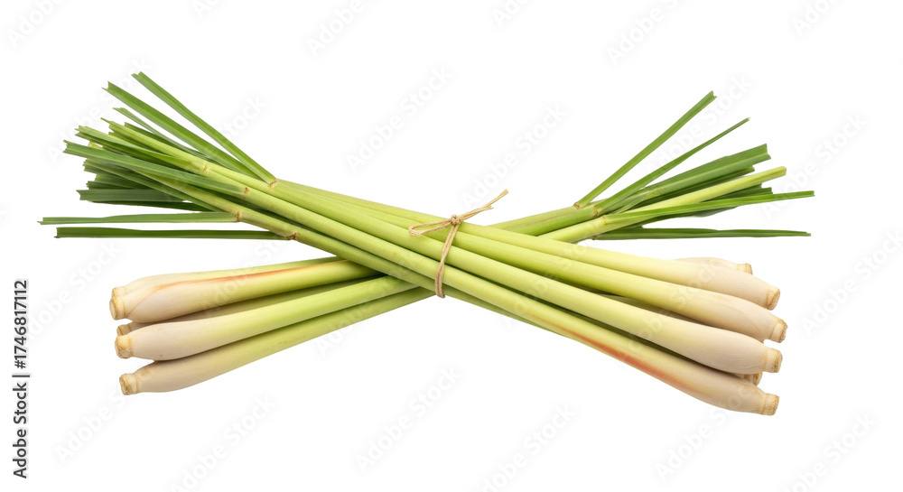 Isolated lemongrass stalk bundle, aromatic ingredient for Asian cuisine, herb in cooking