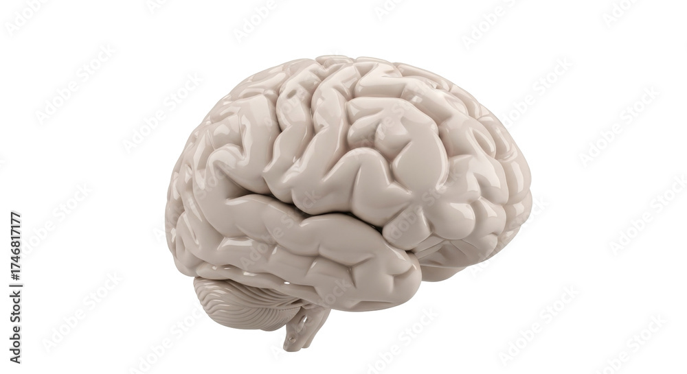 Isolated human brain model with intricate details, scientific anatomy, medical illustration