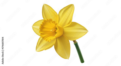 Isolated yellow Daffodil flower on a stem, a sign of spring, happiness and Easter season