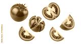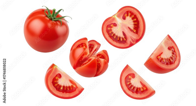 Isolated sliced fresh ripe tomatoes, raw vegetable ingredient on a plain surface close-up