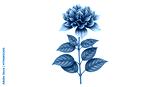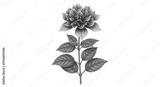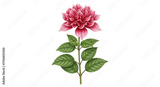 Isolated decorative Dahlia flower, crimson petals, green leaves, botanical illustration