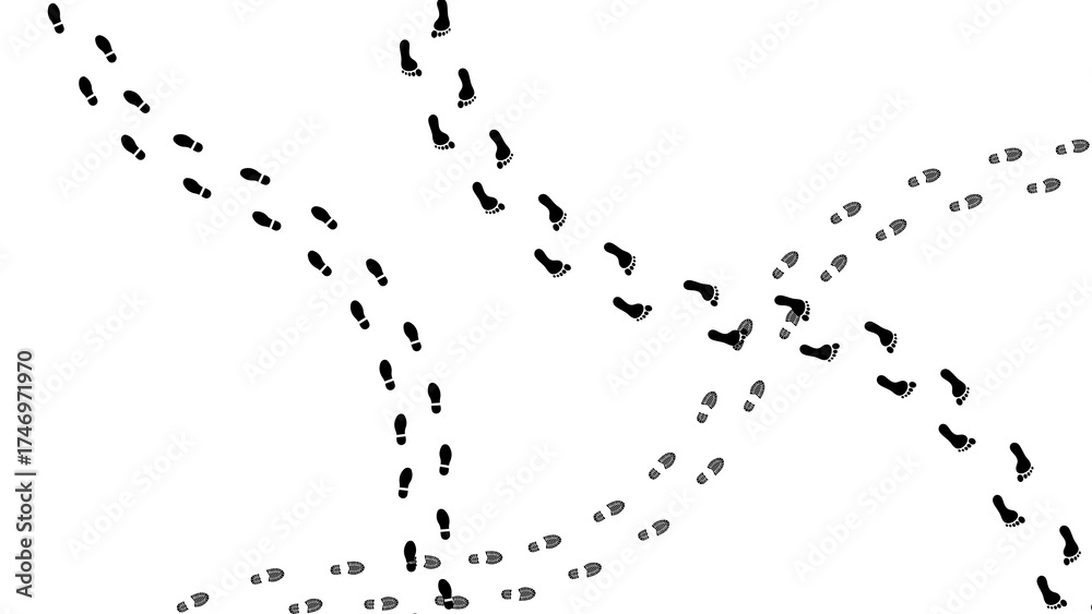 Human footprints on transparent background. Human traces, track, shoe, tracking, sole, shoeprints - stock vector and PNG.