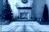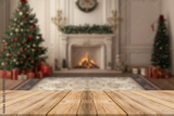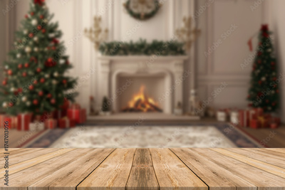 Wooden table with Christmas or new year background