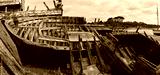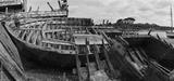 épaves de bateaux échoués sur une côte de la rade de Brest en Bretagne