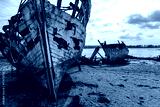 épaves de bateaux échouées sur une côte de la rade de Brest en Bretagne