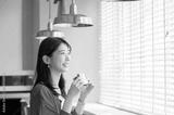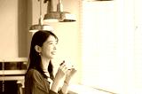 カフェでサンドイッチを食べる日本人女性