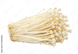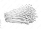 Isolated Bunch of Enoki Mushrooms Delicate and Slender Stems with Tiny White Caps Close-Up