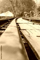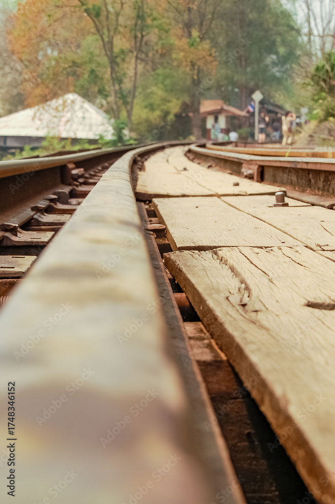 旧泰緬鉄道の線路と木の枕木(ノスタルジックな視点) / Old Thai-Burma Railway Tracks and Wooden Sleepers (Nostalgic Perspective)