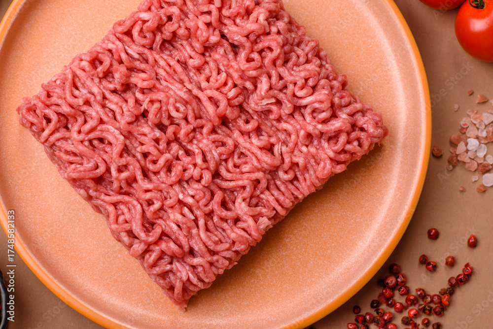 Raw ground beef for a burger or as an ingredient in a meat dish. Raw ground beef