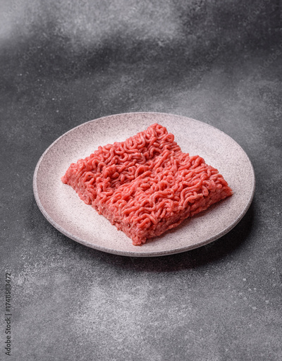 Raw ground beef for a burger or as an ingredient in a meat dish. Raw ground beef
