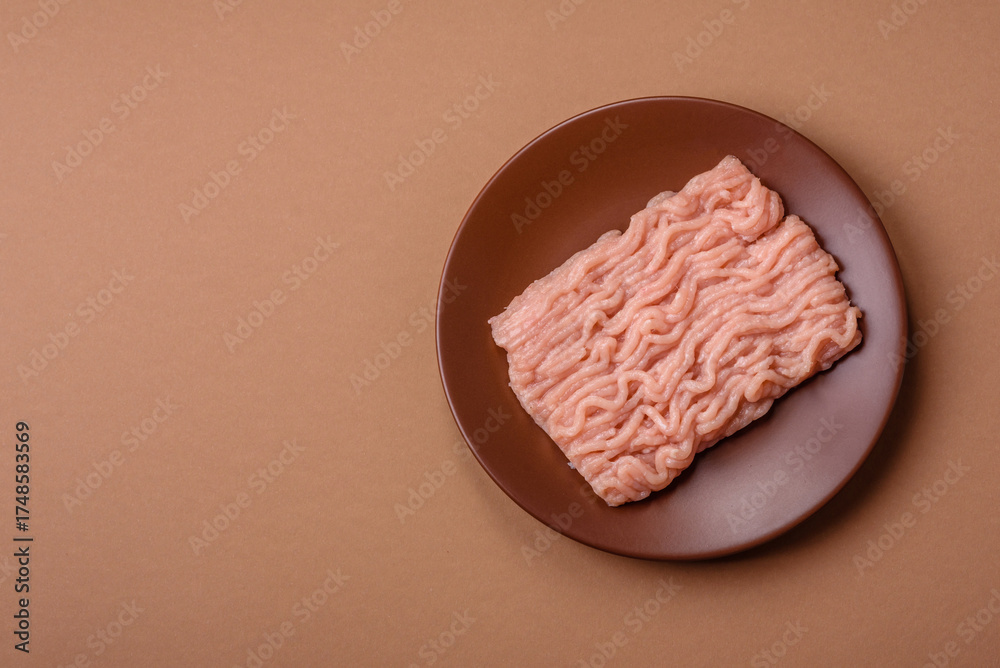 Raw minced chicken for a burger or as an ingredient in a meat dish. Raw ground chicken