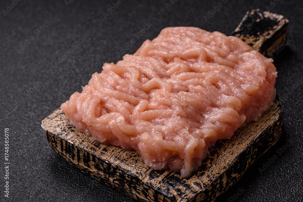 Raw minced chicken for a burger or as an ingredient in a meat dish. Raw ground chicken