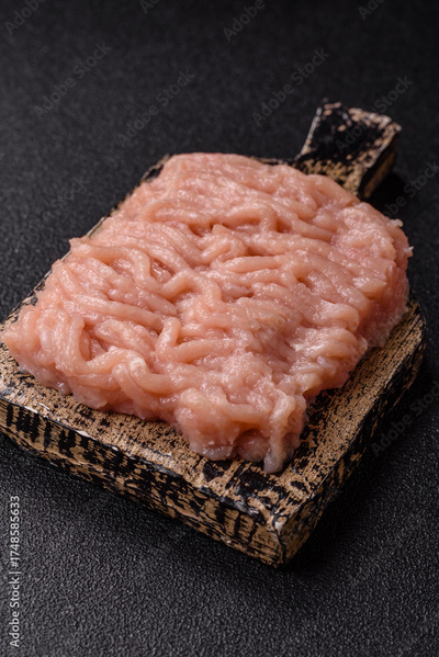 Raw minced chicken for a burger or as an ingredient in a meat dish. Raw ground chicken