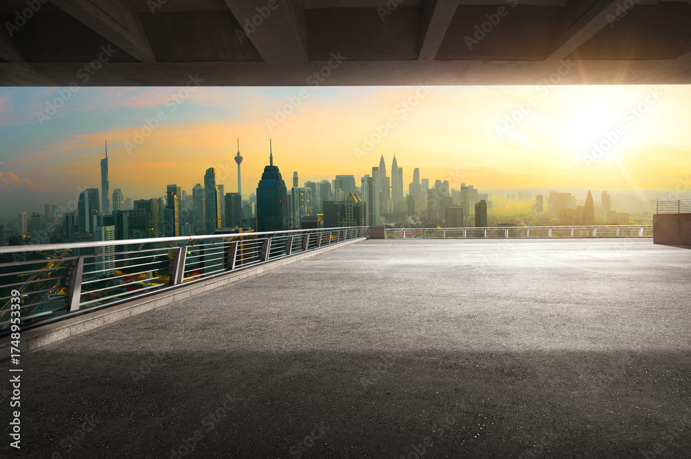 Empty Asphalt Road with Kuala Lumpur City Skyline at Sunrise