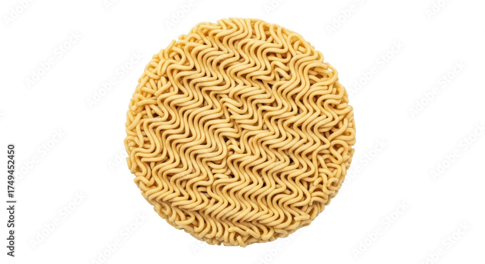 Isolated uncooked ramen noodles block, fast and cheap Asian comfort food ingredient
