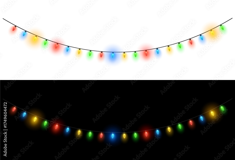 Decoration of Christmas Lights on string. PNG isolated Lights