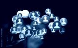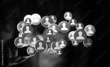 Person icons symbolize human resources, connected by a network, highlighting digital communication and management.