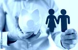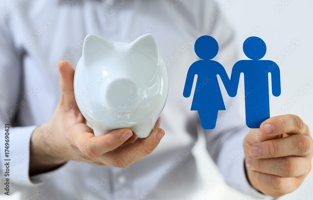 Image of a couple saving money, piggy bank, financial planning, security, future.