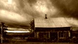 A black and white image of an abandoned house