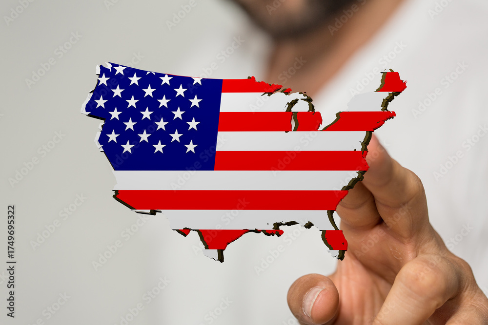 Person holding a US map designed as the American flag. Patriotism, nation.